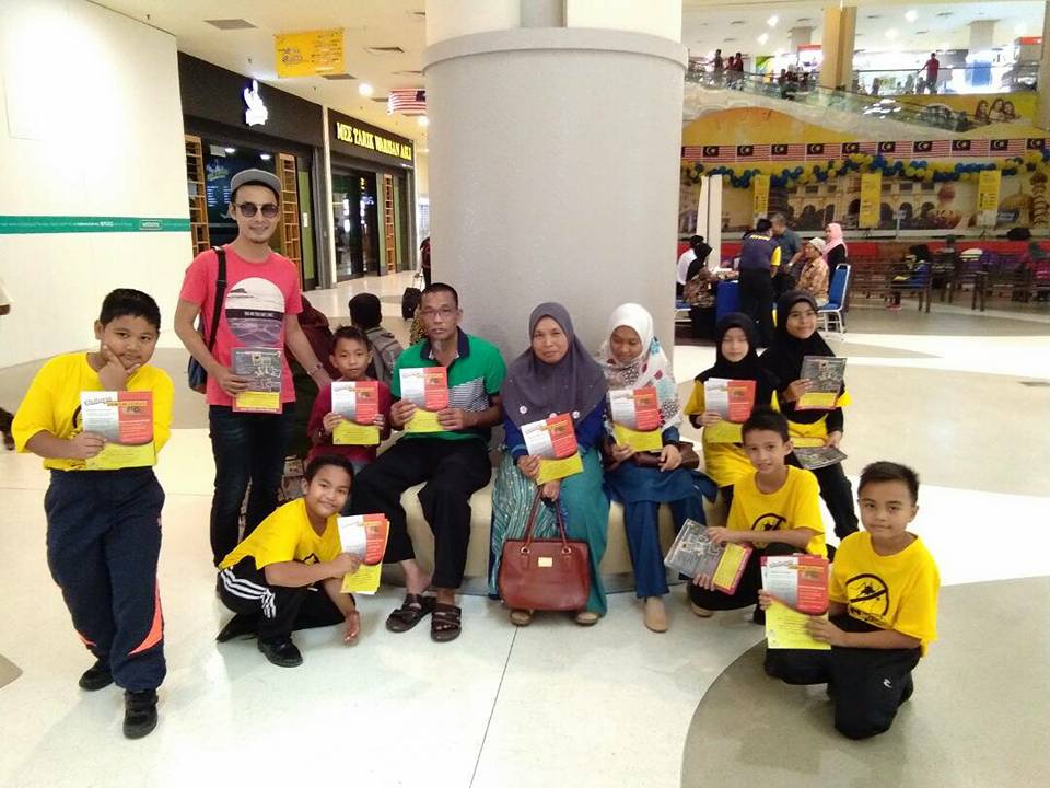 Zaim & Najiha still doing their campaign...otw to balik kampung at Terengganu, they distribute flyers to public at....